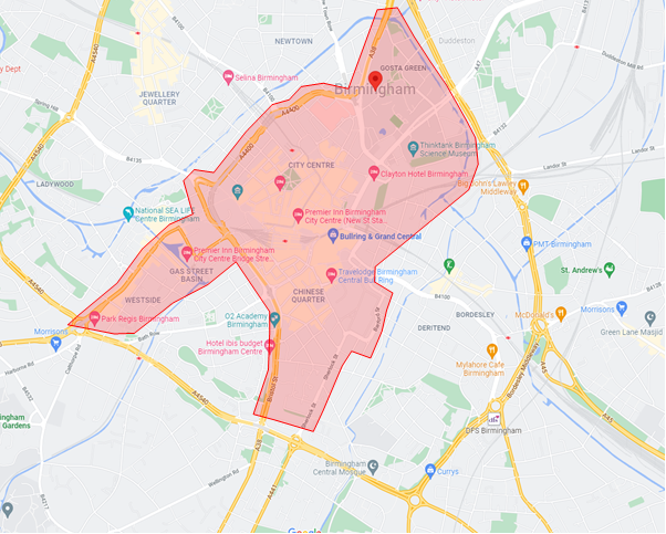 Birmingham City Centre, see map below: |