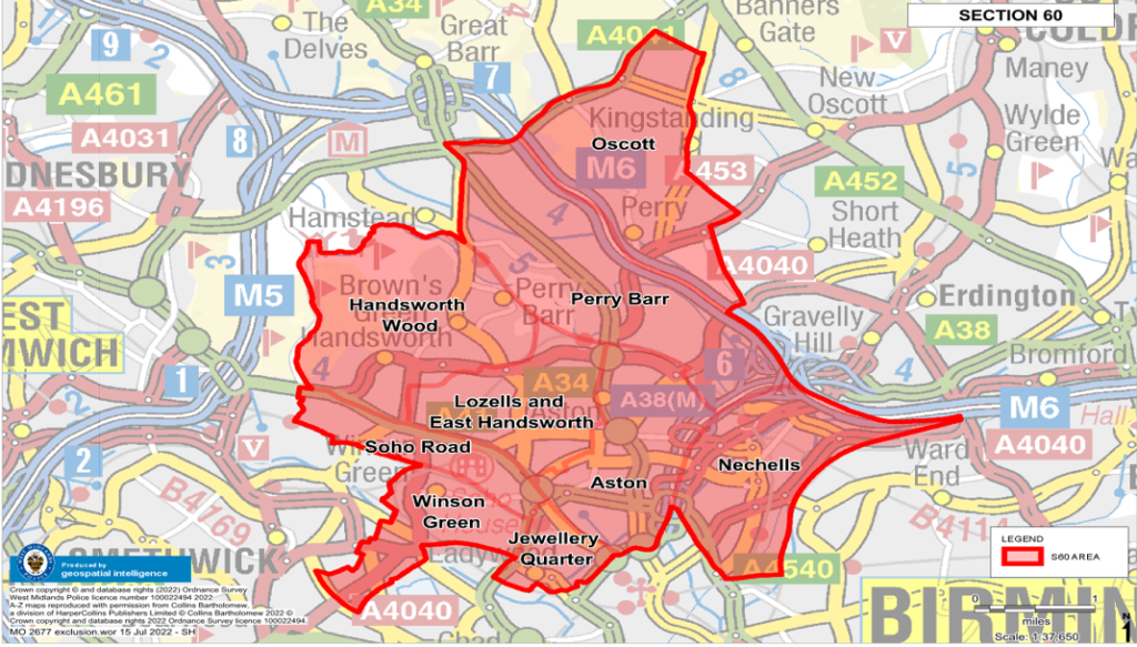 Since the 7th July 2022 areas of Birmingham have seen a significant escalation in the incidents of high-level violence, including firearm discharges and stabbings. This included the fatal stabbing of a 16 year old child and a second incident that is currently being investigated as an attempt murder of a further 17 year old child. It’s believed that some of these offences are connected and linked to gang activity. There are concerns over further retaliatory attacks. There are also high-profile unregulated events planned over the weekend amongst the Gangs community that are scheduled to take place within the geographic area of Birmingham East LPU. Intelligence indicates that there is a strong possibility of disorder involving Birmingham West nominals as well. Further incident on 16/07/2022 in the Ladywood area where a call was received from a member of the public at 22:08hrs reporting hearing gun shots (caller states heard 3 shots) and one male involved was on an electric bike with a revolver in his hand. It is believed that there is likely to be further incidents involving violence and weapons in the Birmingham area and therefore a section 60 is necessary to protect the public. |