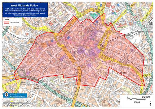 The communities of Birmingham have seen a rise in public-place violence over the last few months, with some very serious levels of force, including cases of weapons being used. West Midlands Police is determined to tackle this issue head-on, and to use the full range of powers available to us where proportionate and necessary.Alongside a number of proactive and investigative activities taking place, an authority under section 60 of the Criminal Justice and Public Order Act 1994 has been made, whereby between 1600hrs on 26th February until 0400hrs on 27th February officers will have the power to search people in the City Centre, Small Heath and Bordesley Green [as per the attached map]. Anyone who has any information about crime and disorder in the area can report it by: web chat through our website or telephone on 101 (including anonymously, if they wish).