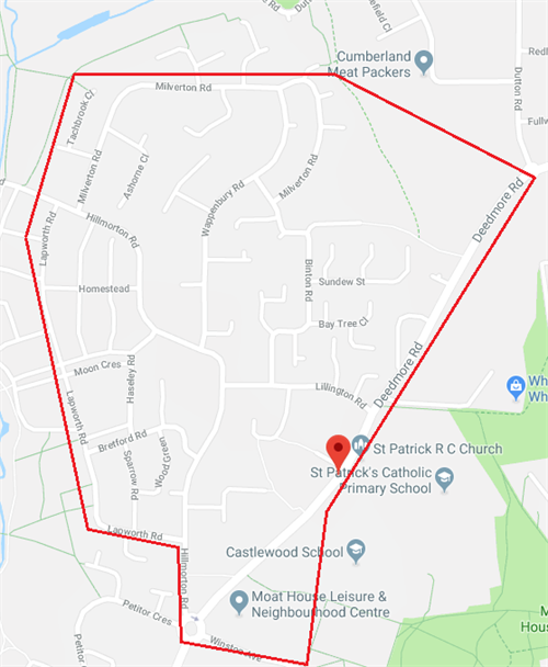 The area outlined below is limited to specific frequented streets in the heart of the estate. It covers 3 main arterial routes on the estate, namely Deedmore Rd, Hilmorton Rd and Lapworth Rd.