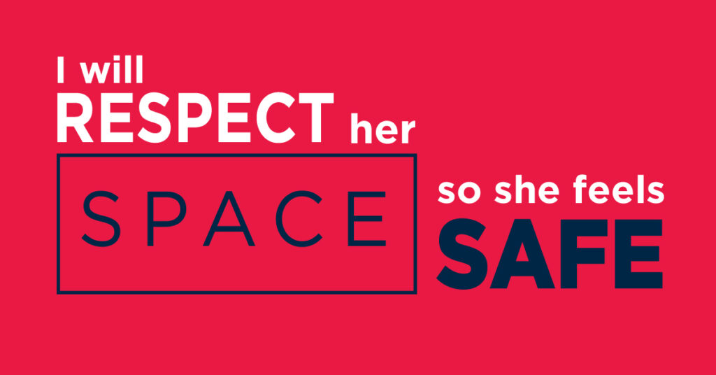 They also appeal to men to be upstanders for women’s safety by making small changes to their behaviour such as giving women space out on the street and on public transport. They also tell men to show respect for women by not wolf whistling and encourage them to challenge bad behaviour in other men.