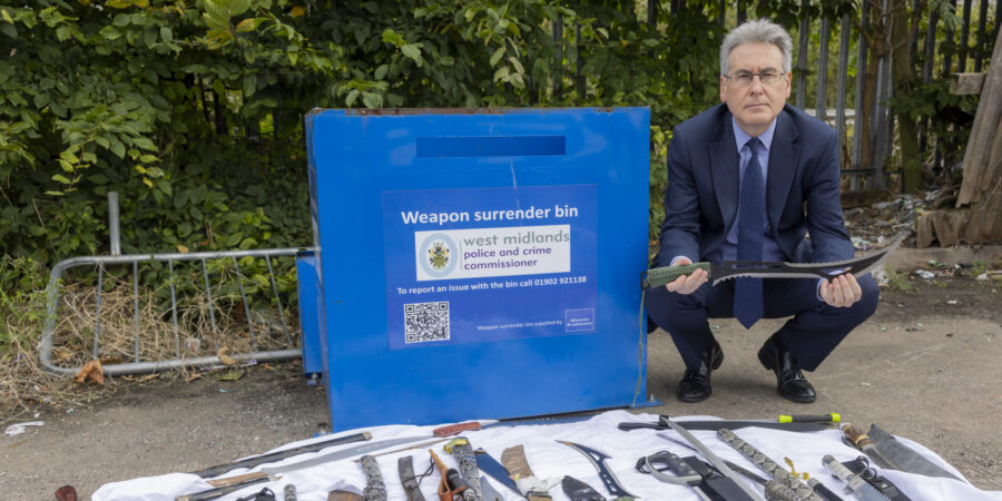 The PCC was in Aston, Birmingham, this week to witness the emptying of one of his 31 weapon surrender bins that are dotted around the West Midlands.