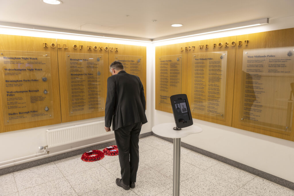 He placed a wreath of poppies at the force roll of honour, to remember those lost in the line of duty, during the service earlier today.